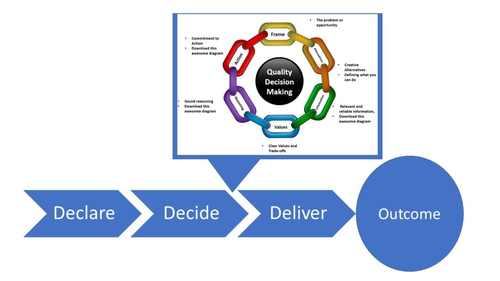 The decisions we make are often complex and uncertain. A good decision-making process better is critical to success – knowing how we make decisions, and how to confirm we are making good decisions – allows us to bring quality to our decisions. To do this we need to understand what a quality decision looks like and how to obtain it.