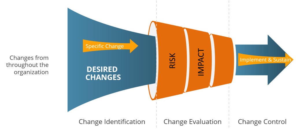 Right sized change control based on risk and impact. Some changes are one-and-done. But many are multi-faceted, and it is important to structure it appropriately.