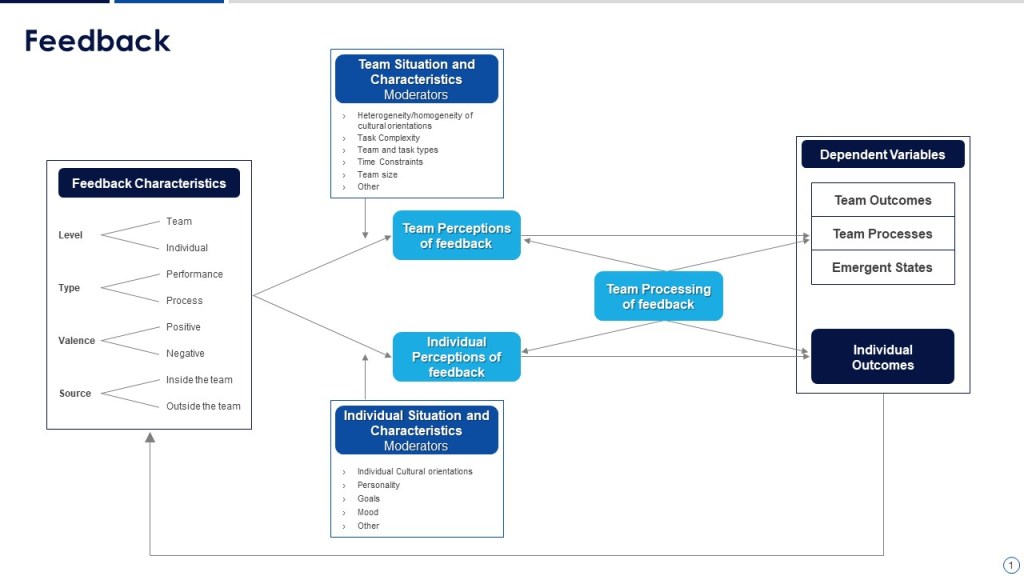 Research on feedback in teams recognizes the importance of continuous reflection and feedback mechanisms to team success and generally finds that the feedback process is an ongoing dynamic system of performance management rather than an isolated event. Feedback is critical to teams learning.