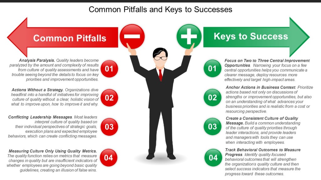 A critical part for improving culture is being able to measure the current situation. A great place to start is using a survey-based to gather input from employees on the current culture of quality. Some of the topic areas can include: