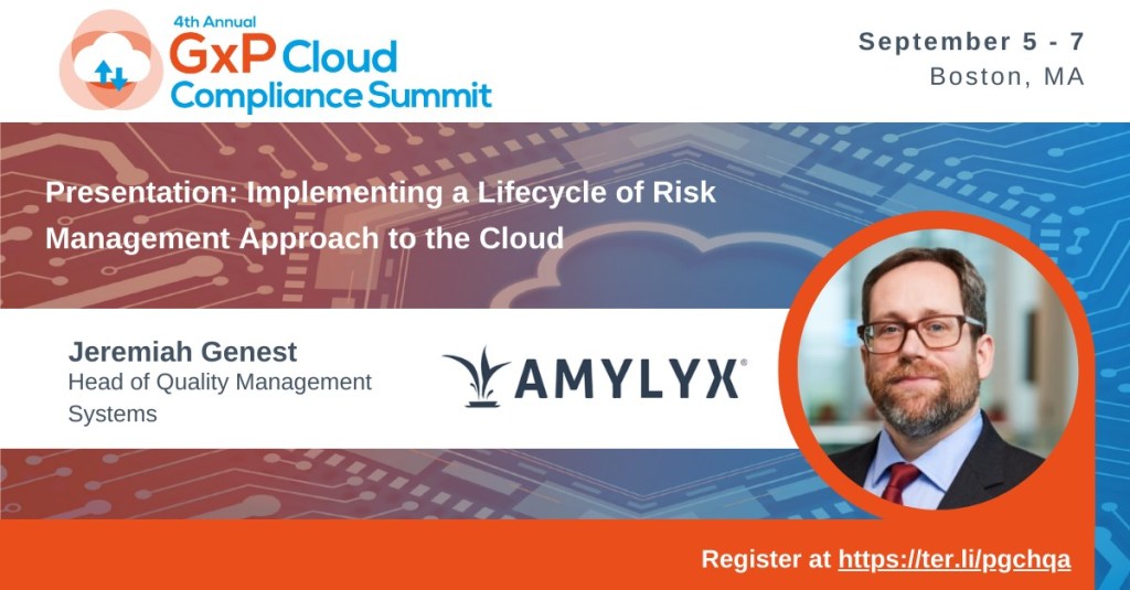 I am looking forward to speaking at the GxP Cloud Compliance Summit in Boston in September on Implementing a Lifecycle Risk Management Approach to the Cloud. I’ll be discussing some of my favorite topics: