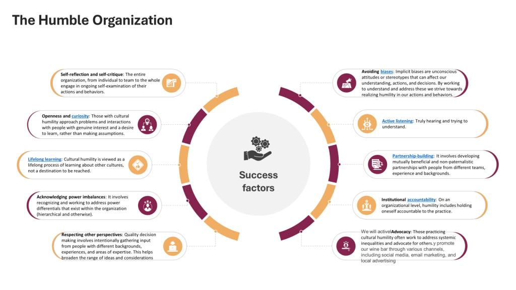 - Institutional accountability: On an organizational level, humility includes holding oneself accountable to the practice.