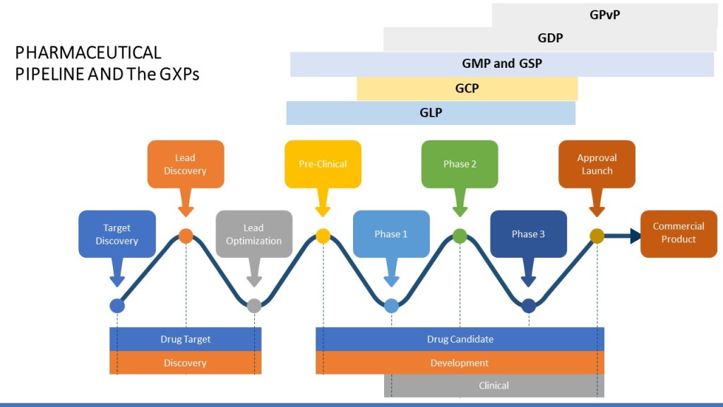 By nature the GxPs are tied to the phase of the pharmaceutical pipeline.