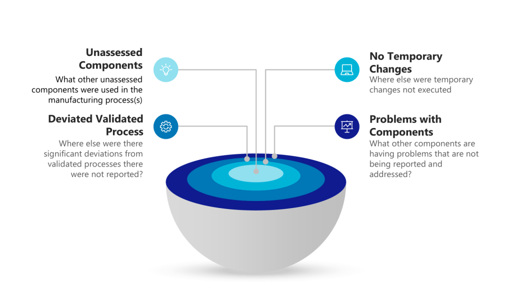 - Evaluates possible consequences to product quality and patient safety