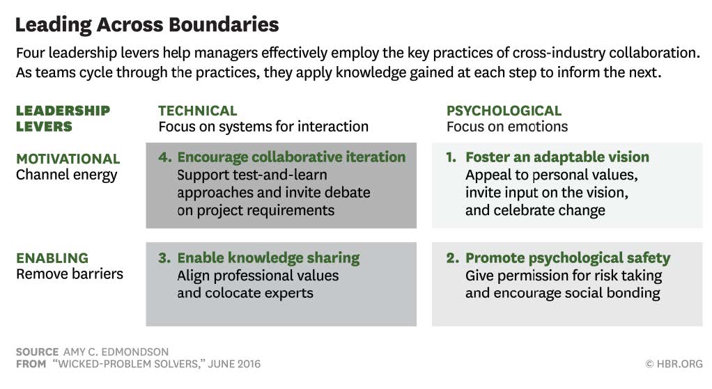 Professor Edmondson in this article is discussing cross-industry collaboration, but the central four levers apply in any organization.