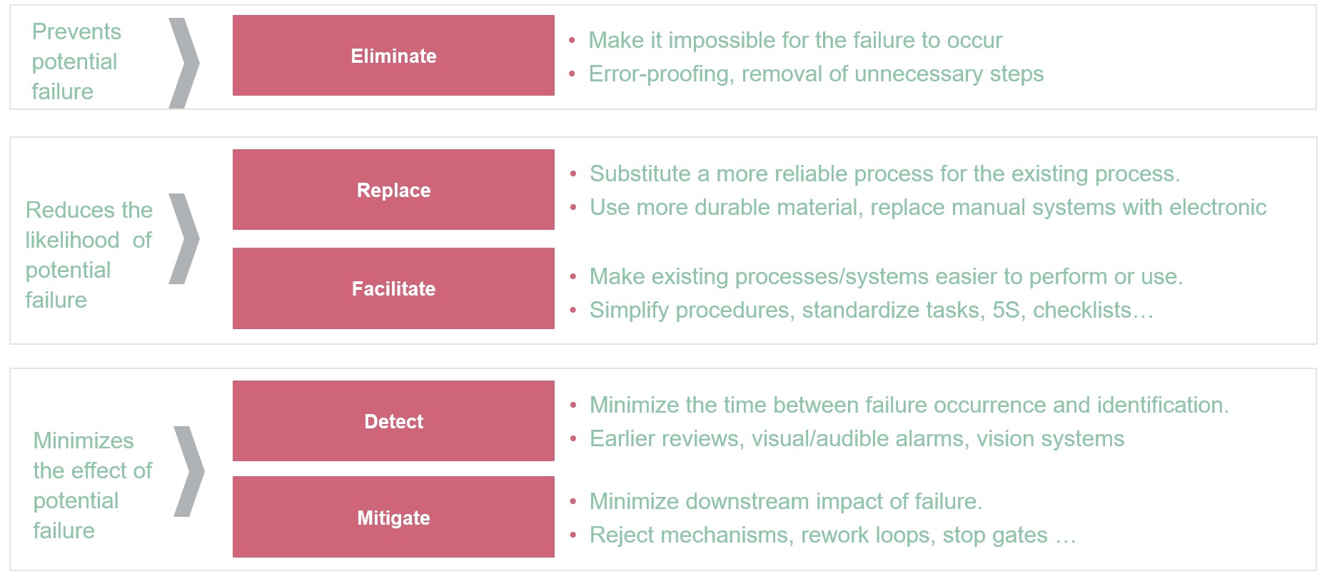 The language “modifying processes or system design” establishes a hierarchy of risk control that prioritizes prevention over detection. Rather than accepting inherent system risks and compensating through enhanced testing or operational controls, Section 4 requires organizations to redesign systems and processes to eliminate or minimize risks at their source. This approach aligns with fundamental safety engineering principles while ensuring that risk mitigation is built into system architecture rather than layered on top.