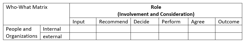 By including a wider set of people, the Who-What Matrix assists in creating trust, commitment, and a sense of procedural justice, and thus, enhance the likelihood of success. The matrix can also integrate people across functions, hierarchy, business units, locations, and partner organizations.