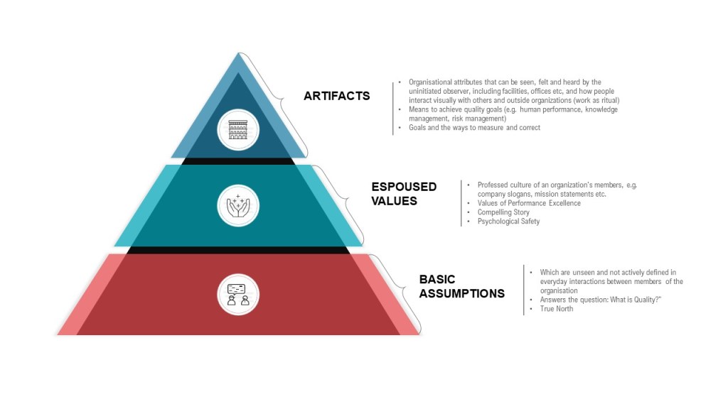 Schein’s model of organizational culture provides a valuable place to start in assessing quality culture:
